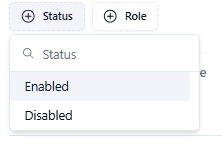 - Filter users by “Enabled or Disabled” status using the Status filter